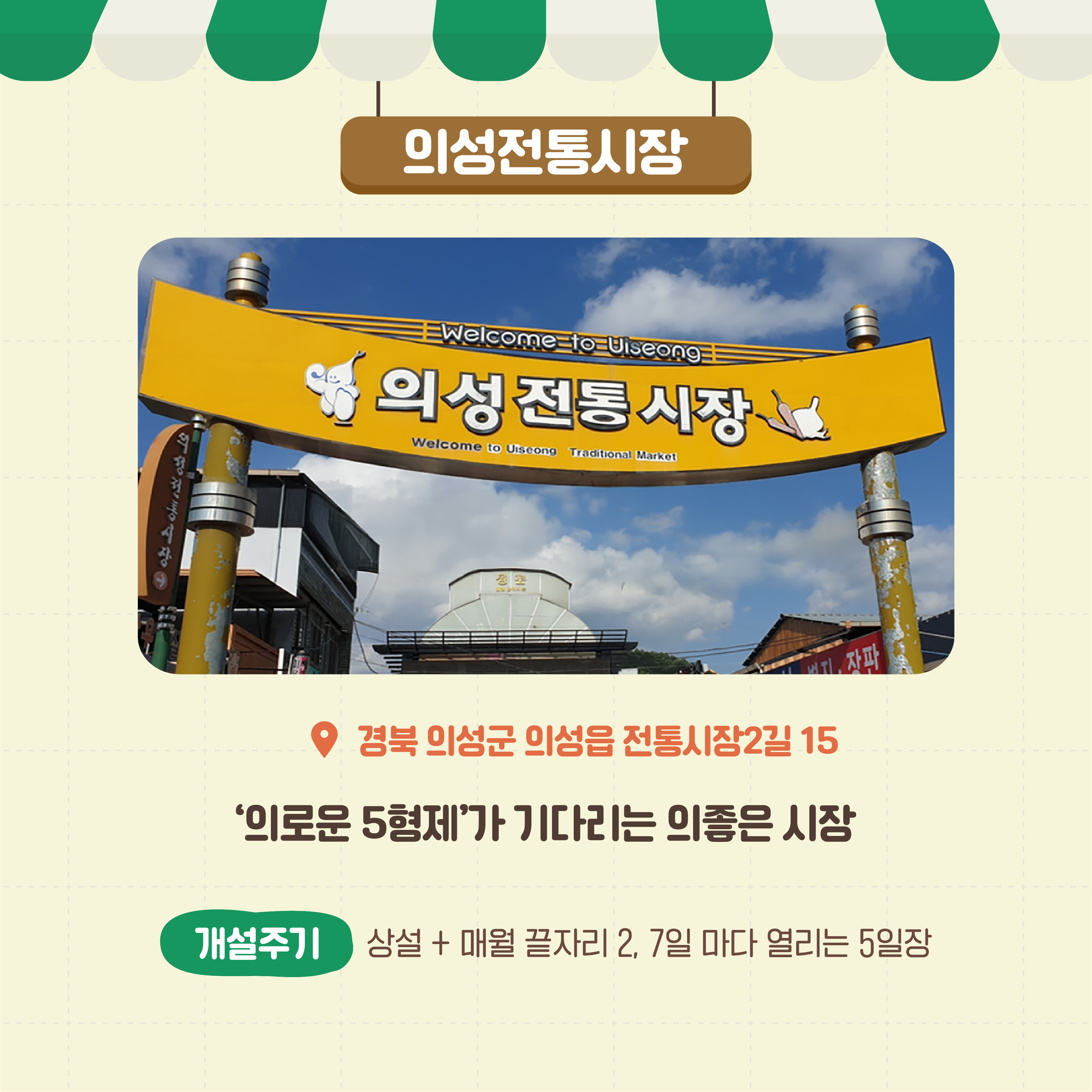 - 장소 : 경북 의성군 의성군 의성읍 전통시장 2길 15 (의성 전통시장)