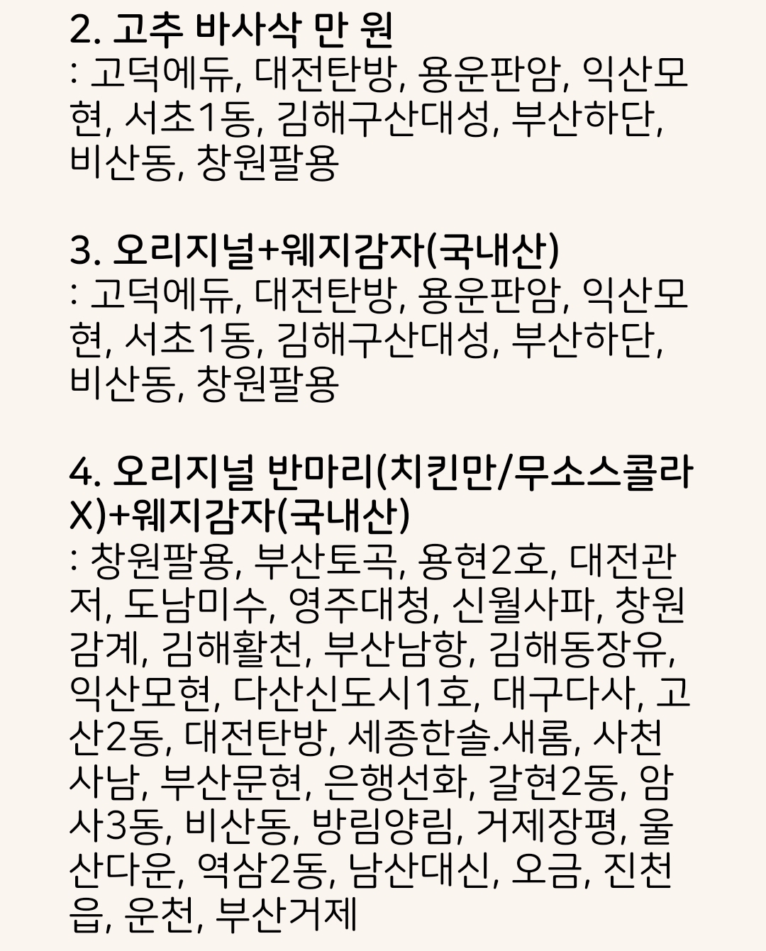 고추바사삭 1만원의 행복을 누릴 수 있는 곳은 고덕애듀,대전 탐방, 용운 판암, 익산모현, 서초 1동
