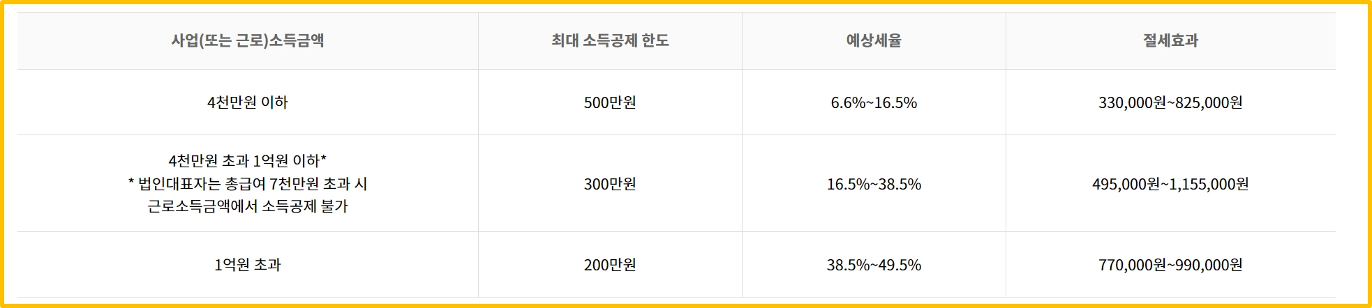 1억원 초과일 때 최대 소득 공제 한도는 200만원입니다. 절세 효과는 77만원에서 약 99만원입니다.