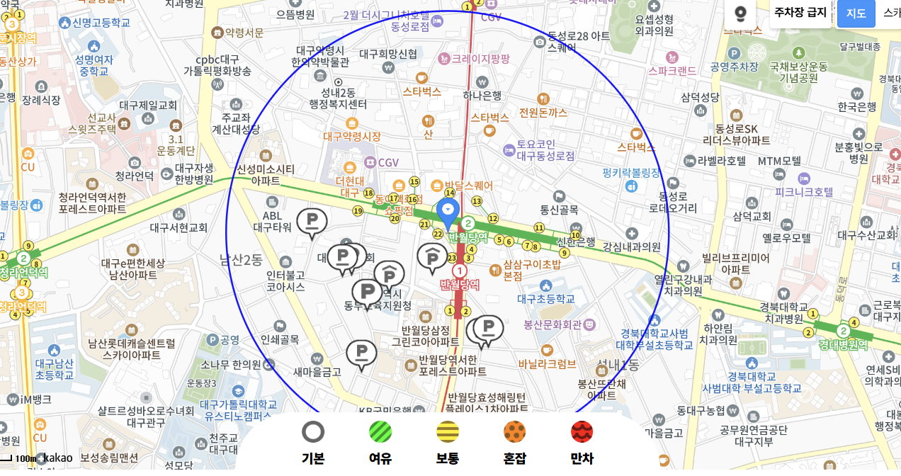 - 주차장 정보 제공: 대구 시내 1,653곳의 공영주차장 위치, 주차 면수, 운영 시간, 요금 등 기본 정보를 제공합니다.