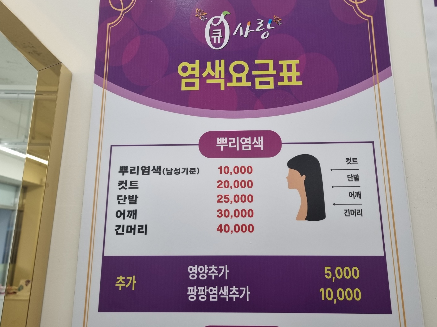 큐사랑 봉산점 염색 가격이 진짜 착해요.