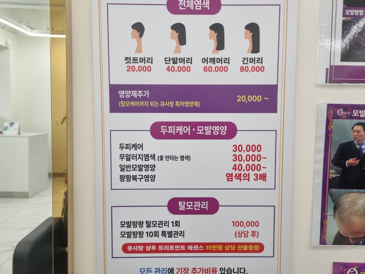 전체 염색도 커트머리 2만원에서 어깨는 6만원 선입니다.