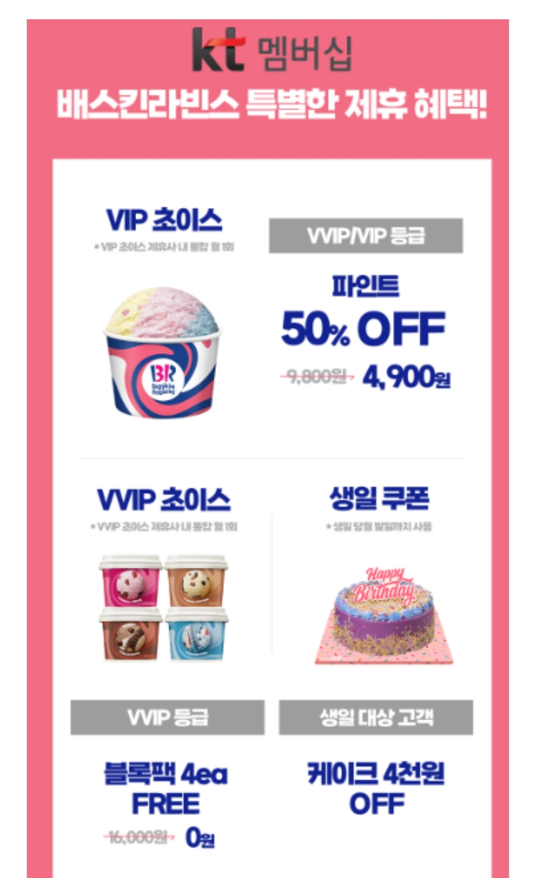 KT 멤버십 배스킨라빈스 아이스크림 제휴 혜택도 있는데요.