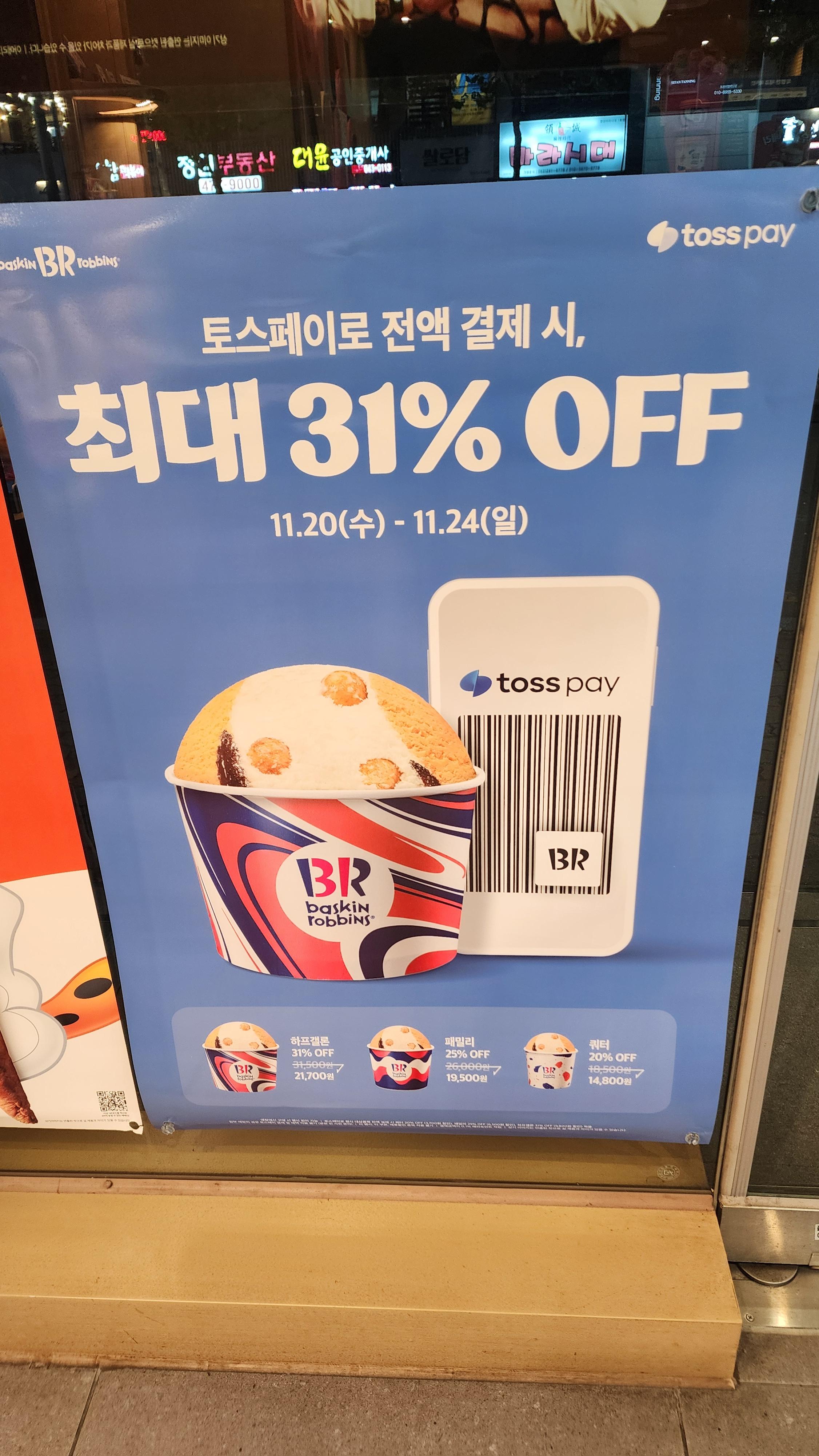 아이스크림 먹고 싶어서 며칠동안 베스킨라빈스 지나갈 때마다 쳐다봤다.