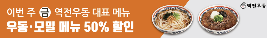 김치우동어묵탕 | 50% | 9,000원 | 6/23(월)~6/30(월) | |||