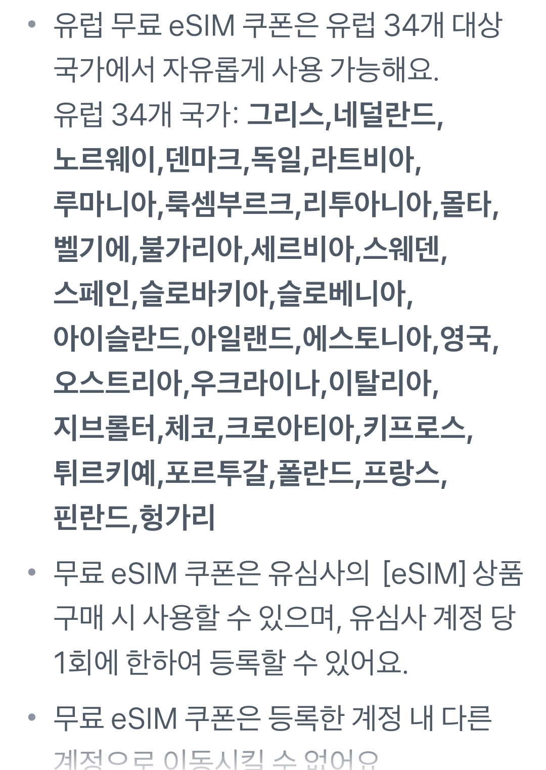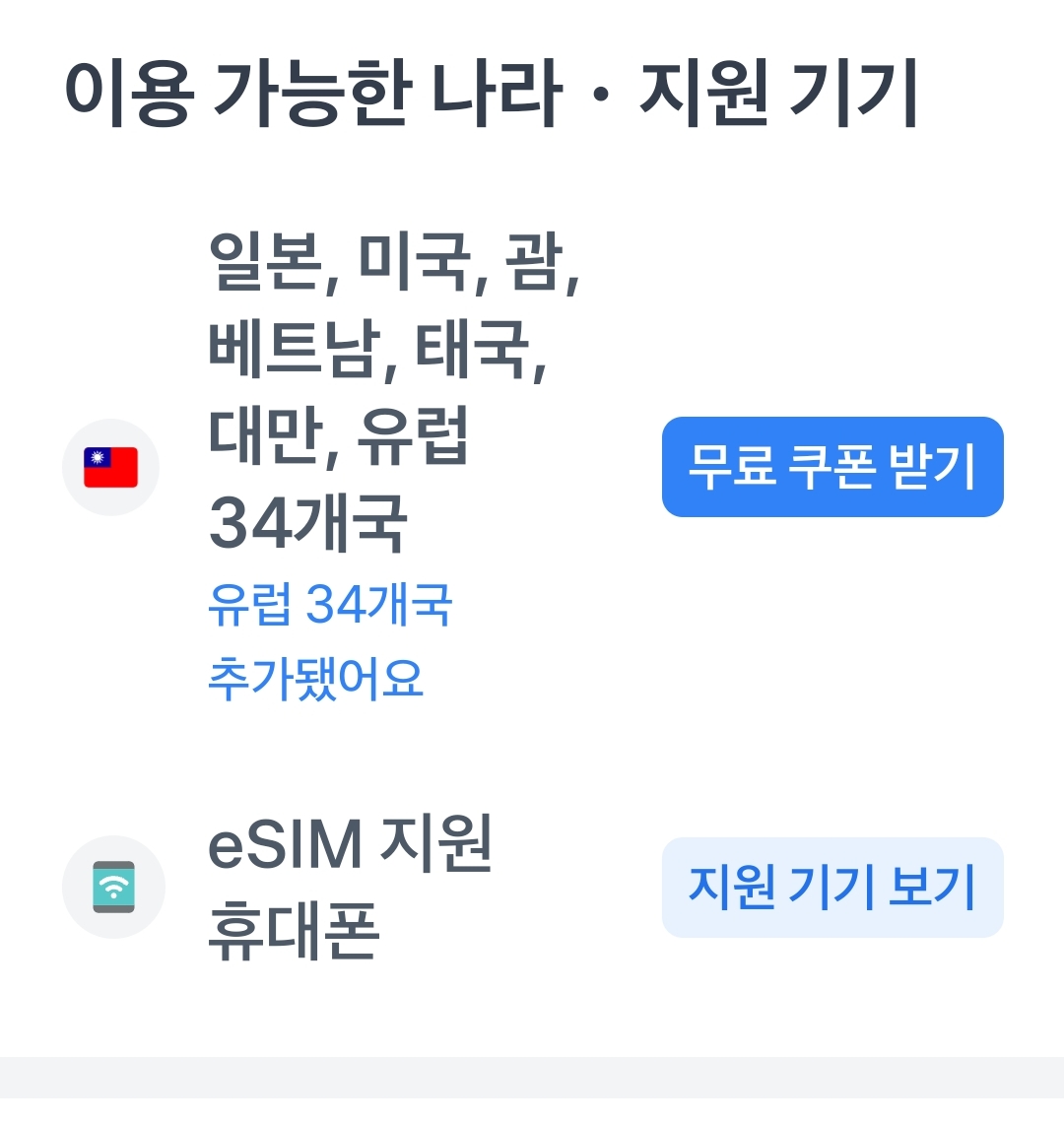 eSIM 무료 이용 가능한 나라와 지원기를 꼭 확인하셔야 합니다.