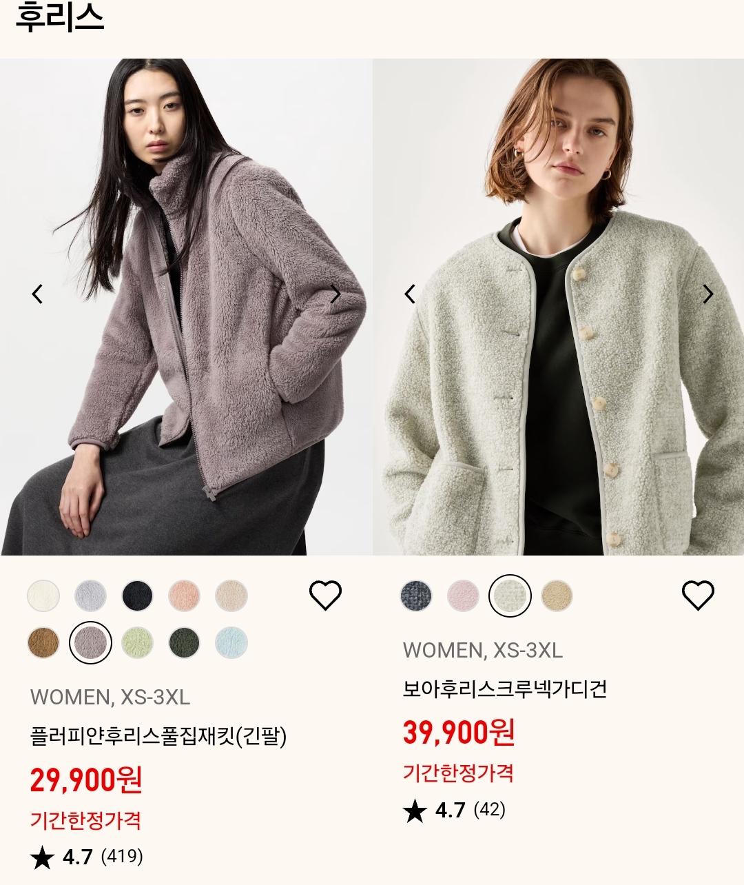 후리스는 29900원,39900원