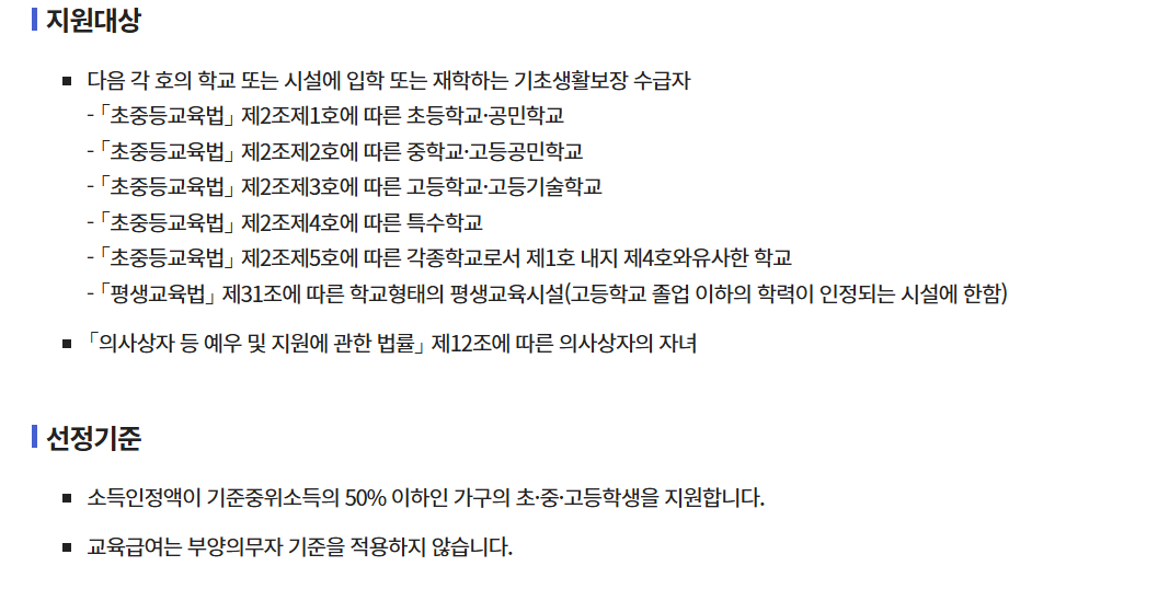 2025년 초중고 학생 교육급여, 교육비 지원 신청기간은
