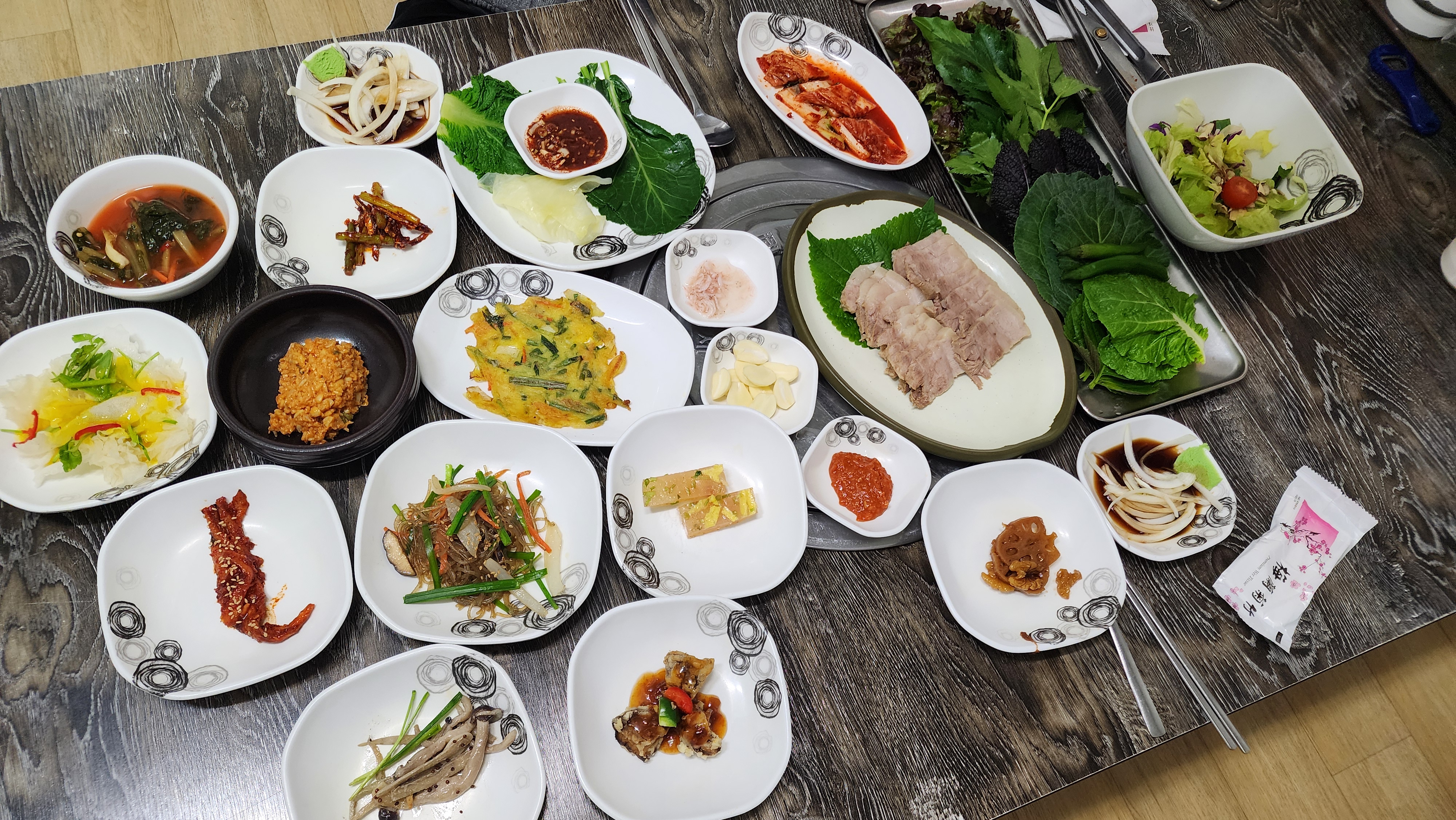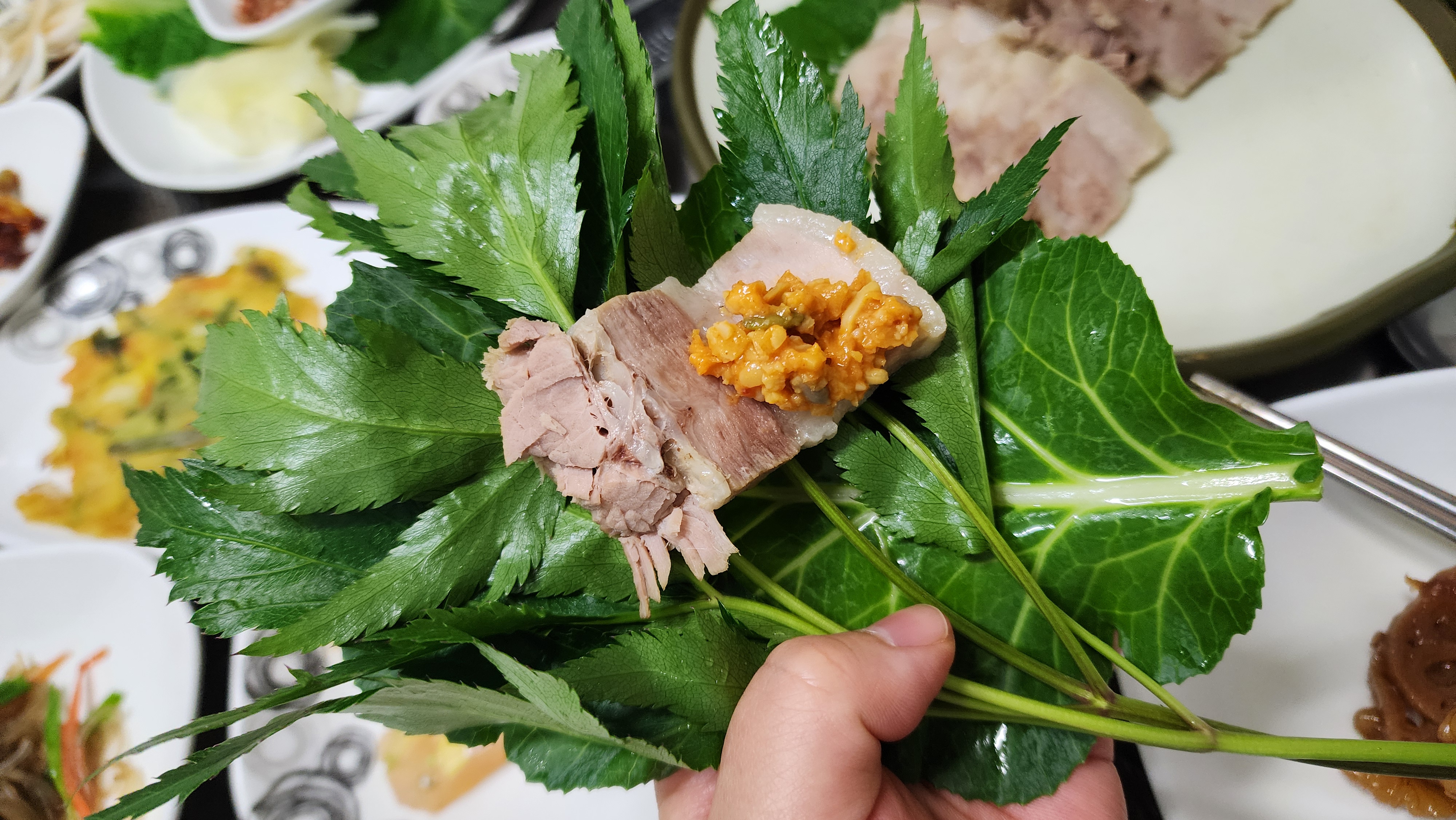 당귀랑 싱싱한 채소랑 수육이랑 쌈 된장이랑 콕 찍어서 냠냠냠 맛있게 잘먹었습니다. 감사합니다.