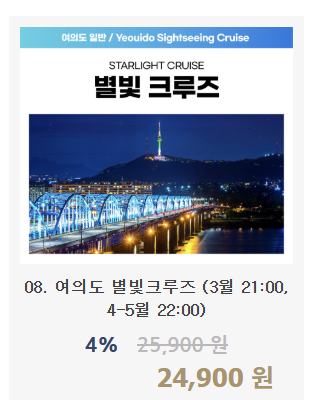 ▶달빛 디너 크루즈 (4월 지정일 19: 30분) 139,000원