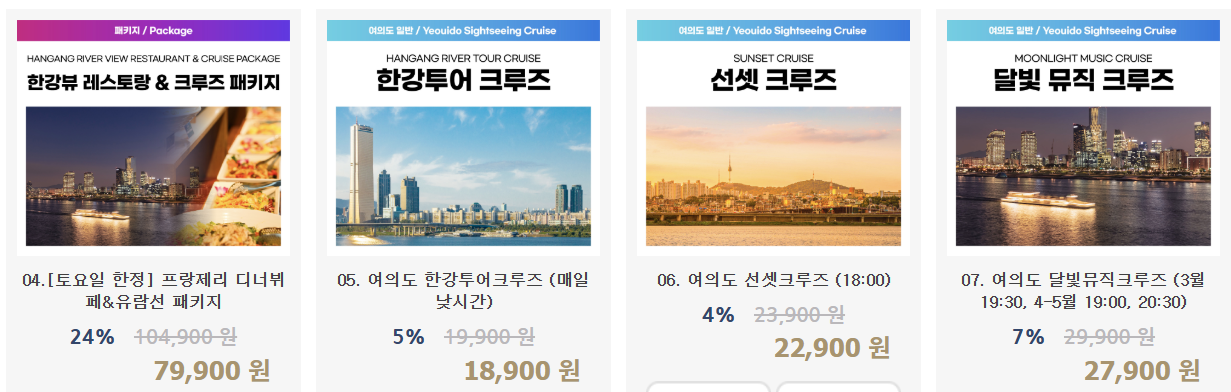 여의도 선셋 크루즈는 2만원대로 이루어져 있답니다.