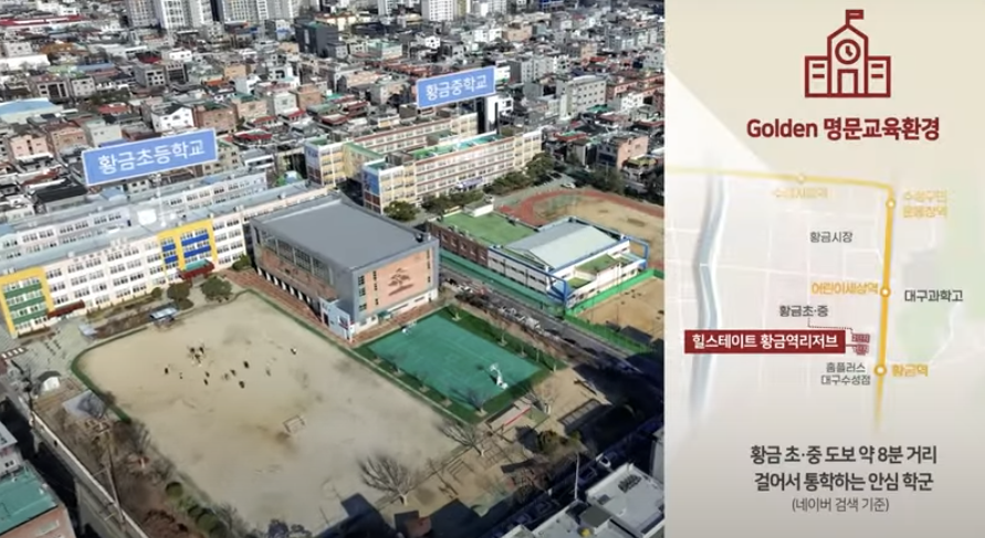 수성구 학군으로 황금초등학교, 황금중학교, 대구과학고등학교 등이 인접해 있습니다.