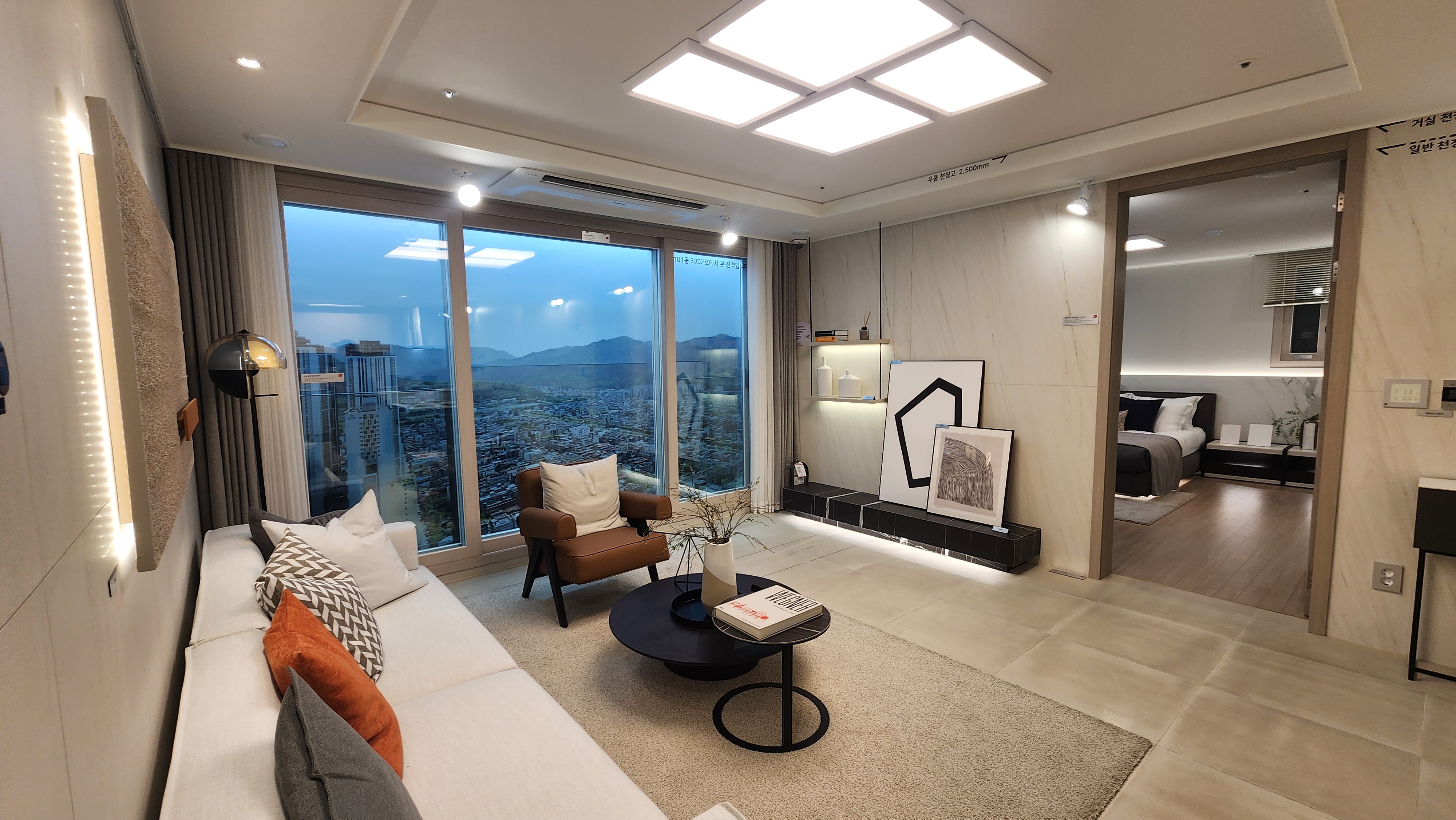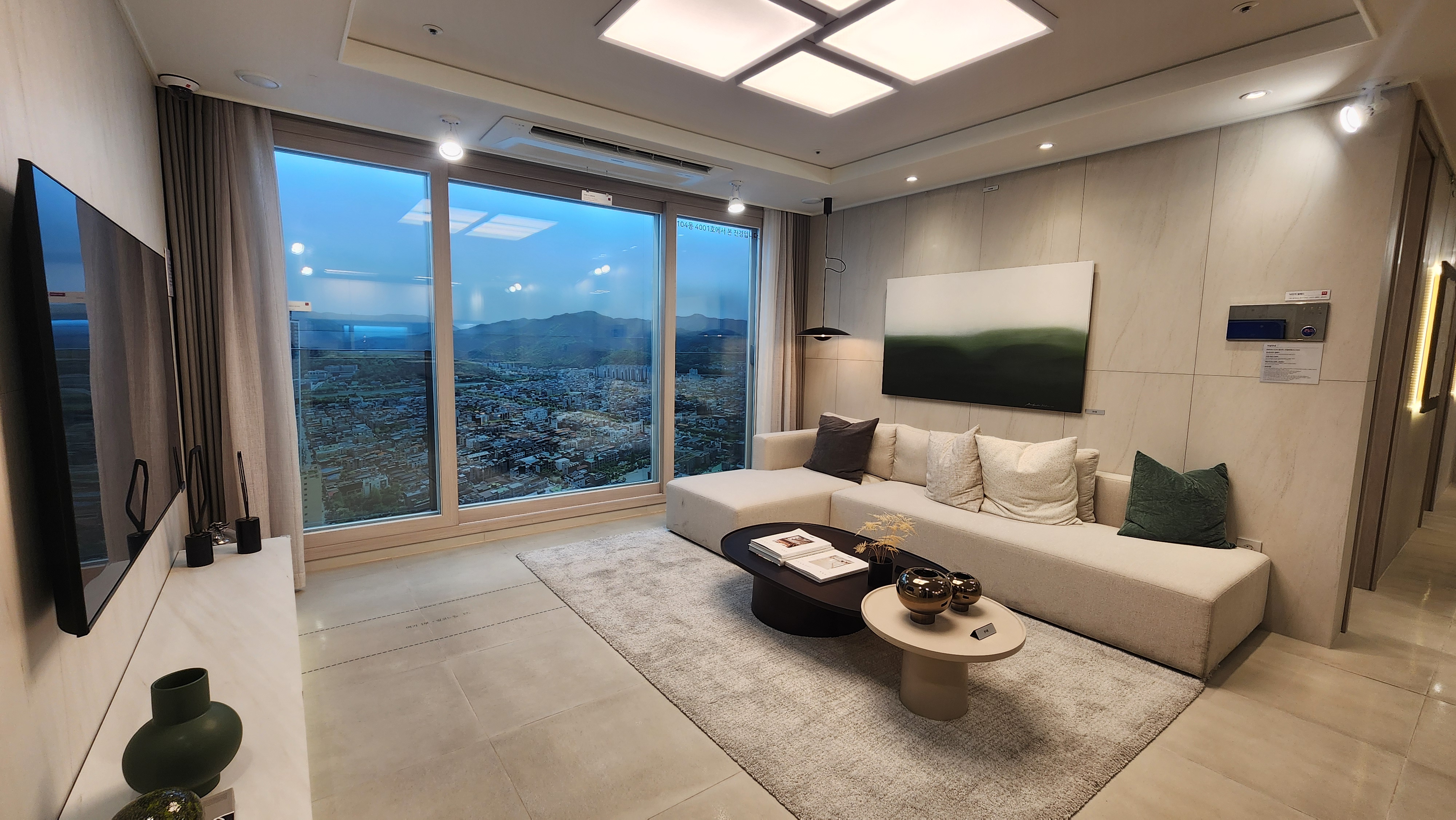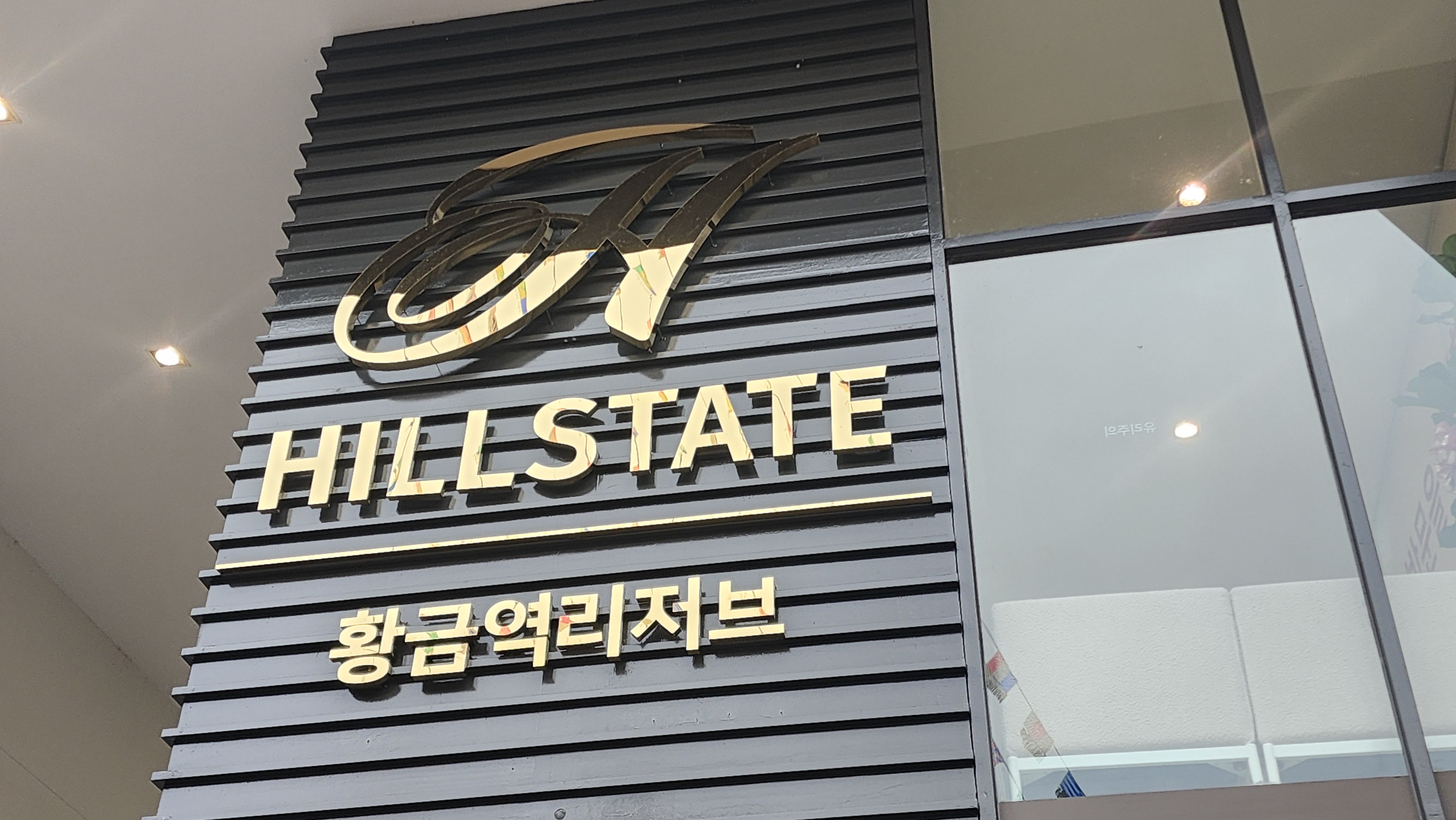 황금역 리저브 힐스테이트는 대형 아트월 마감이라 고급스러웠어요.