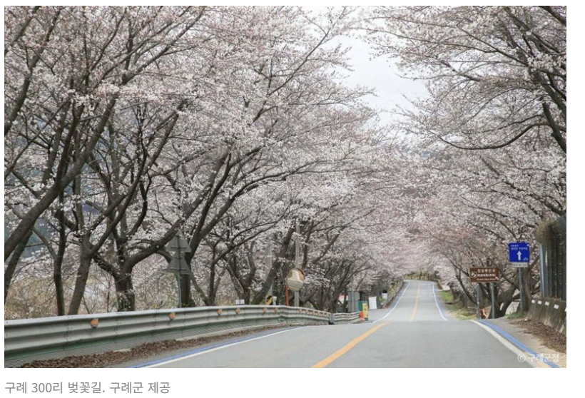 전국에서 가장 긴 벚꽃길을 자랑하는 '구례 300리 벚꽃축제'도 3월 28일부터 3일간 열린다. 산불 여파로 프로그램을 일부 축소했지만 상춘객들에게 불편이 없도록 편의를 제공할 예정이다. 300리 벚꽃길은 전남 곡성에서 구례를 거쳐 경남 하동까지 이어지는 129㎞에 이르는 길로, 이들 지역을 연결하는 국도 17호선과 19호선을 따라 자동차를 달리다 보면 세상 시름마저 날려버릴 수 있다.