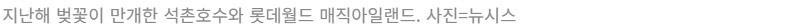 롯데월드와 송리단길 사이에 위치한 석촌호수는 호수를 둘러싼 벚꽃이 아름답기로 유명합니다. 호수 너머로 보이는 롯데월드 타워와 함께 인생샷을 남기기에 최적의 장소입니다.