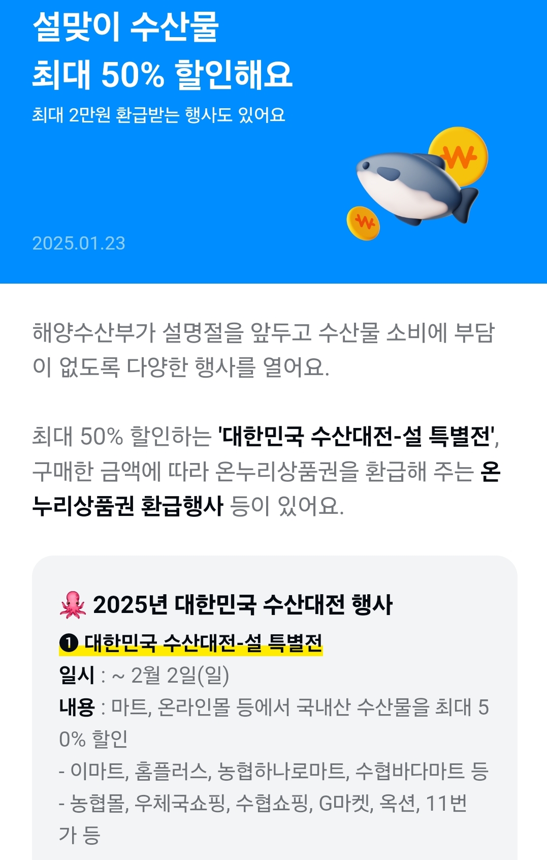 2025년 1월 23일(목)~ 1월 27일(월)까지 진행될 예정이다. (상품권 소진으로 조기 마감될 수 있습니다.)