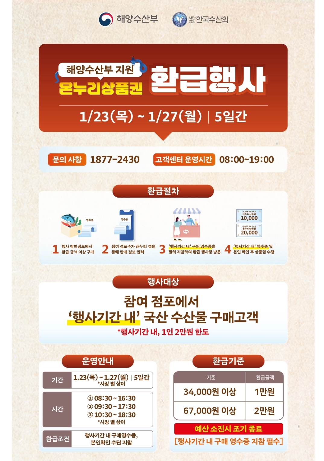 34,000원 이상 구매 시 >> 1만원 온누리 상품권 환급